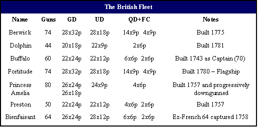 The 56-gun ships are all of the 18-pdr class 154ft class, as also encountered at Camperdown.